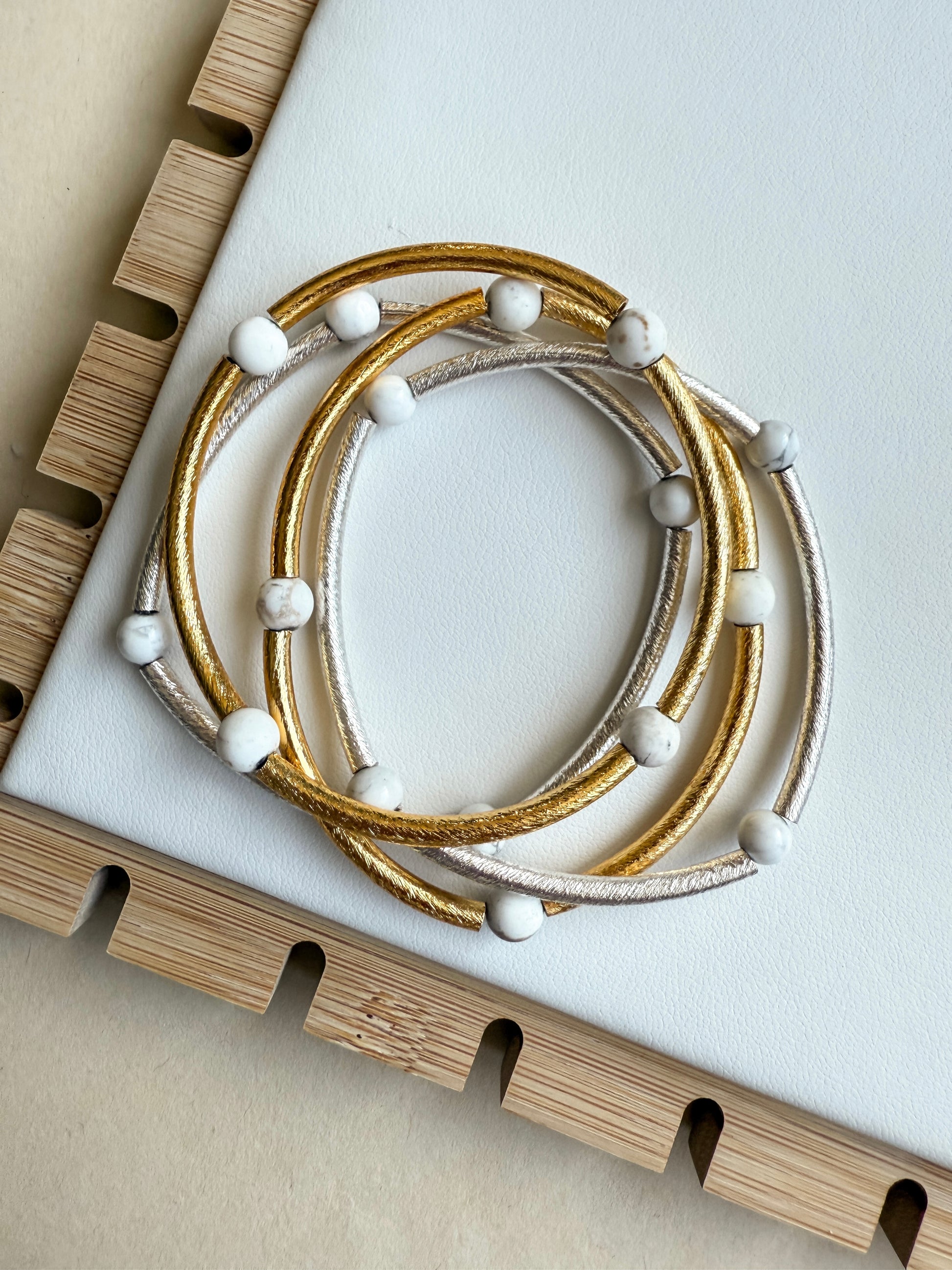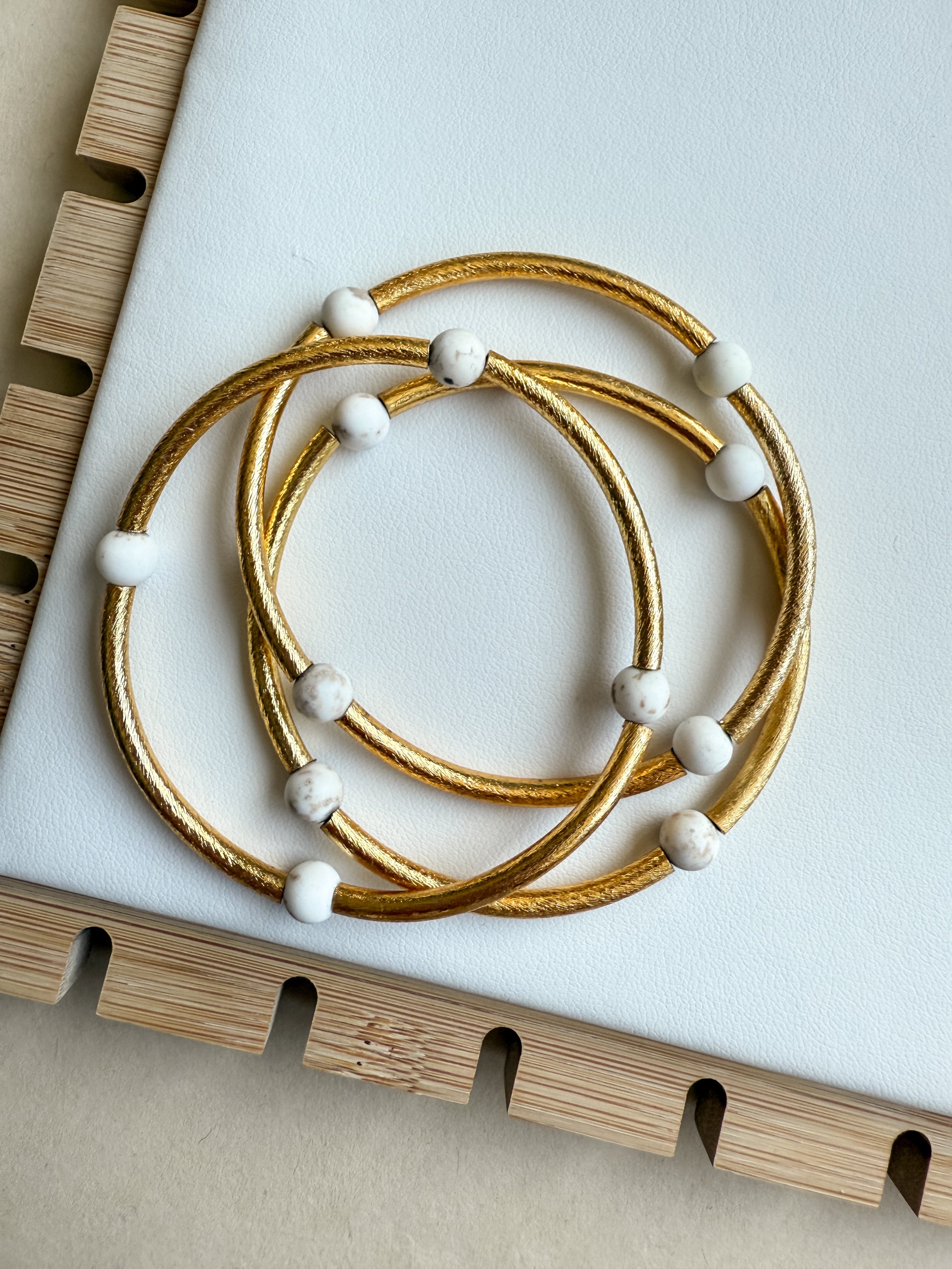 Made with gold-plated or silver-plated tube beads and gemstone accents
